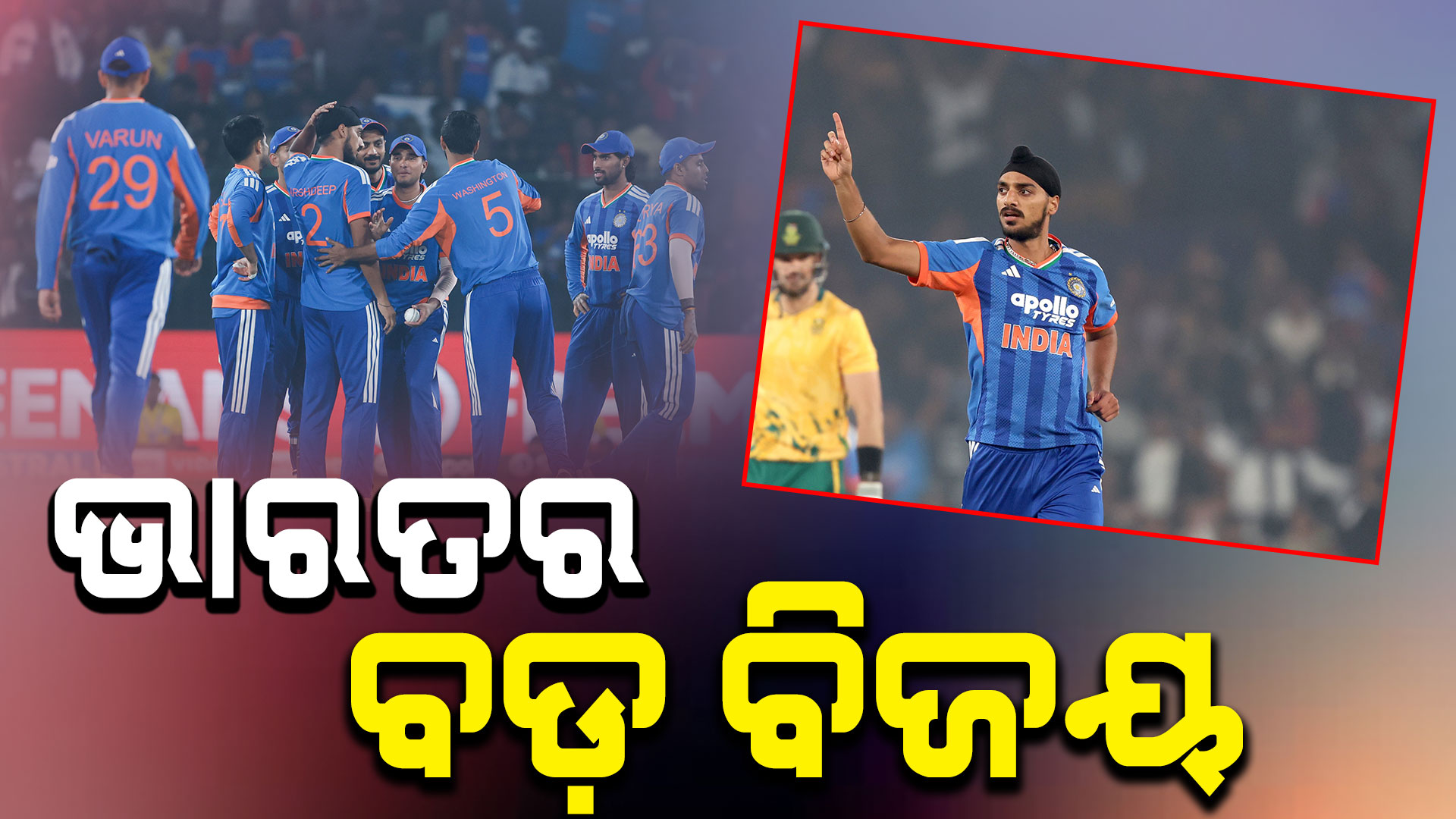 ସଂଚାର ବ୍ୟୁରୋ: ବାରବାଟୀରେ ଟିମ ଇଣ୍ଡିଆର ବୃହତ ବିଜୟ । ଦକ୍ଷିଣ ଆଫ୍ରିକାକୁ ୧୦୧ ରନରେ ହରାଇଲା ଟିମ ଇଣ୍ଡିଆ । ୨୭୬ ରନ ପିଛା କରିବାକୁ ଯାଇ ୧୨ ଓଭର ୩ଟି ବଲରେ ମାତ୍ର ୭୪ ରନ କରି ଅଲଆଉଟ ହୋଇଛି ଦକ୍ଷଣ ଆଫ୍ରିକା । ଏହି ବିଜୟ ସହ ୫ ଟିକିଆ ସିରିଜରେ ୧-୦ରେ ଆଗୁଆ ହୋଇଛି ଟିମ ଇଣ୍ଡିଆ । ପ୍ରଥମରେ କୌଣସି ରନ ନକରି ଦଳର ଓପନର କ୍ଵିଣ୍ଟନ ଡି-କକ ଅଭିଷେକ ବର୍ମାଙ୍କ ଶିକାର ହୋଇଥିଲେ । ପରେ ଷ୍ଟବସ ଅର୍ଷଦୀପଙ୍କ ବଲରେ ଆଉଟ ହୋଇଥିବା ବେଳେ, ଅଧିନାୟକ ମାକ୍ରମ ଅକ୍ଷର ପଟେଲ ବଲରେ ଆଉଟ ହୋଇ ପ୍ୟାଭିଲିୟନ ଫେରିଥିଲେ । ଏହାପରେ ଡେଭିଡ ମିଲର, ପେରେରା, ଜନସନ ଯଥାକ୍ରମେ ୨୨, ୧, ୫. ୧୨ ରନ କରି ଆଉଟ ହୋଇଥିଲେ । ପ୍ରଥମେ ବ୍ୟାଟିଂ କରି ଦକ୍ଷିଣ ଆଫ୍ରିକା ଆଗରେ ୧୭୬ ରନ ବିଜୟ ଲକ୍ଷ୍ୟ ରଖିଥିଲା ଭାରତ । ଆଜି ଟସ ଜିତି ଭାରତକୁ ବ୍ୟାଟିଂ ପାଇଁ ଆମନ୍ତ୍ରଣ କରିଥିଲା ଦକ୍ଷିଣ ଆଫ୍ରିକା । ପ୍ରାରମ୍ଭିକ ବ୍ୟାଟିଂ ବିପର୍ଯ୍ୟୟ ସତ୍ତ୍ଵେ ଏକ ସମ୍ମାନଜନକ ସ୍କୋର କରିବାରେ ସକ୍ଷମ ହୋଇଥିଲା ଟିମ ଇଣ୍ଡିଆ । ଦଳୀୟ ସ୍କୋର ୧୭ ବେଳକୁ ୨ଟି ୱିକେଟ ହରାଇଥିଲା ଭାରତ । ତେବେ ତିଳକ ବର୍ମା ପାଳି ସମ୍ଭାଳିଥିଲେ । କିନ୍ତୁ ସେ ଆଉଟ ହେବା ବେଳକୁ ଦଳର ସ୍କୋର ଥିଲା ୭୮ ରନ । ତେବେ ହାର୍ଦ୍ଦିକ ପାଣ୍ଡ୍ୟାଙ୍କ ବିସ୍ଫୋକର ବ୍ଯାଟିଂ ଯୋଗୁ ଦଳ ୬ ୱିକେଟ ହରାଇ ୧୭୫ ରନ କରିବାରେ ସକ୍ଷମ ହୋଇଥିଲା । ପାଣ୍ଡ୍ୟା ୨୮ ବଲରେ ସର୍ବାଧିକ ୫୯ ରନ ସଂଗ୍ରହ କରିଥିଲେ ।.