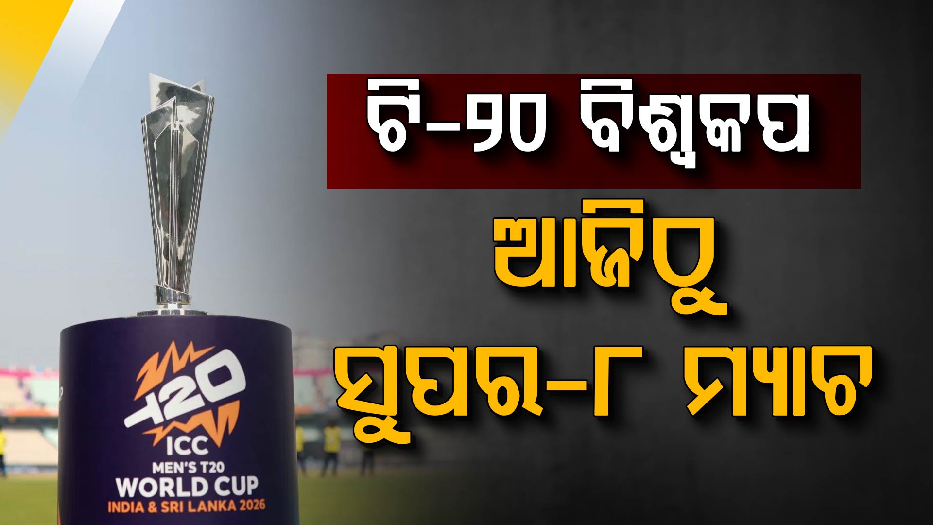 • ଆଜିଠୁ ଟି୨୦ କ୍ରିକେଟ୍‌ ବିଶ୍ୱକପ୍‌ର ସୁପର-୮ ପର୍ଯ୍ୟାୟ