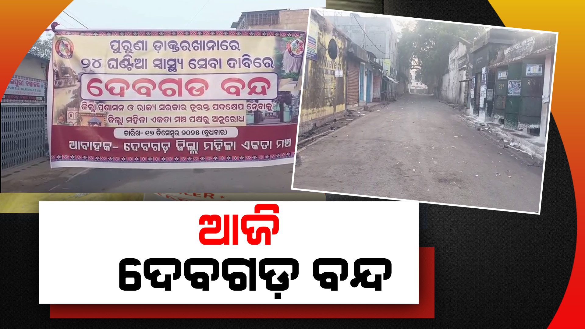 ସଂଚାର ବ୍ୟୁରୋ: ଆଜି ୧୨ ଘଣ୍ଟିଆ ଦେବଗଡ଼ ବନ୍ଦ। ଜିଲ୍ଲା ମୁଖ୍ୟ ଚିକିତ୍ସାଳୟ ପୁରୁଣା କୋଠାରେ ୨୪ ଘଣ୍ଟିଆ ସ୍ୱାସ୍ଥ୍ୟ ସେବା ପ୍ରଦାନ ଦାବିରେ ଜିଲ୍ଲା ମହିଳା ଏକତା ମଞ୍ଚ ପକ୍ଷରୁ ବନ୍ଦ ଡାକରା ଦିଆଯାଇଛି। ସକାଳ ୬ଟାରୁ ସନ୍ଧ୍ୟା ୬ଟା ଯାଏଁ ବନ୍ଦ ପାଳନ ହେଉଥିବାବେଳେ ଏହାର ପ୍ରଭାବ ଦେଖିବାକୁ ମିଳିଛି l ଦୋକାନ ବଜାର ଓ ଗାଡ଼ିମୋଟର ଚଳାଚଳ ବନ୍ଦ ରହିଛି l ଜରୁରୀ କାଳୀନ ସେବା ବ୍ୟତୀତ ସମସ୍ତ ସେବା ବନ୍ଦ ରହିଛି l ୪୯ ନମ୍ବର ଜାତୀୟ ରାଜପଥର ଉଭୟ ପାର୍ଶ୍ଵରେ ଅଟକି ରହିଥିଲା ଯାନବାହାନ l ପୋଲିସ ପହଞ୍ଚି ଆନ୍ଦୋଳନକାରୀଙ୍କୁ ଜାତୀୟ ରାଜପଥରୁ ଉଠାଇ ନେଇଥିବାବେଳେ ଯାନବାହାନ ଚଳାଚଳ ସ୍ୱାଭାବିକ ହୋଇଛି l